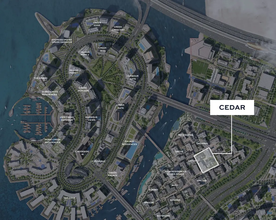 Apartments at Cedar range in size from one to three bedrooms and are located in a stylish residential community comprised of three buildings that rise around a bustling central plaza. Each apartment has a private balcony or terrace that lets in plenty of natural light and contributes to the relaxing atmosphere reflected by the views of the lush park outside.